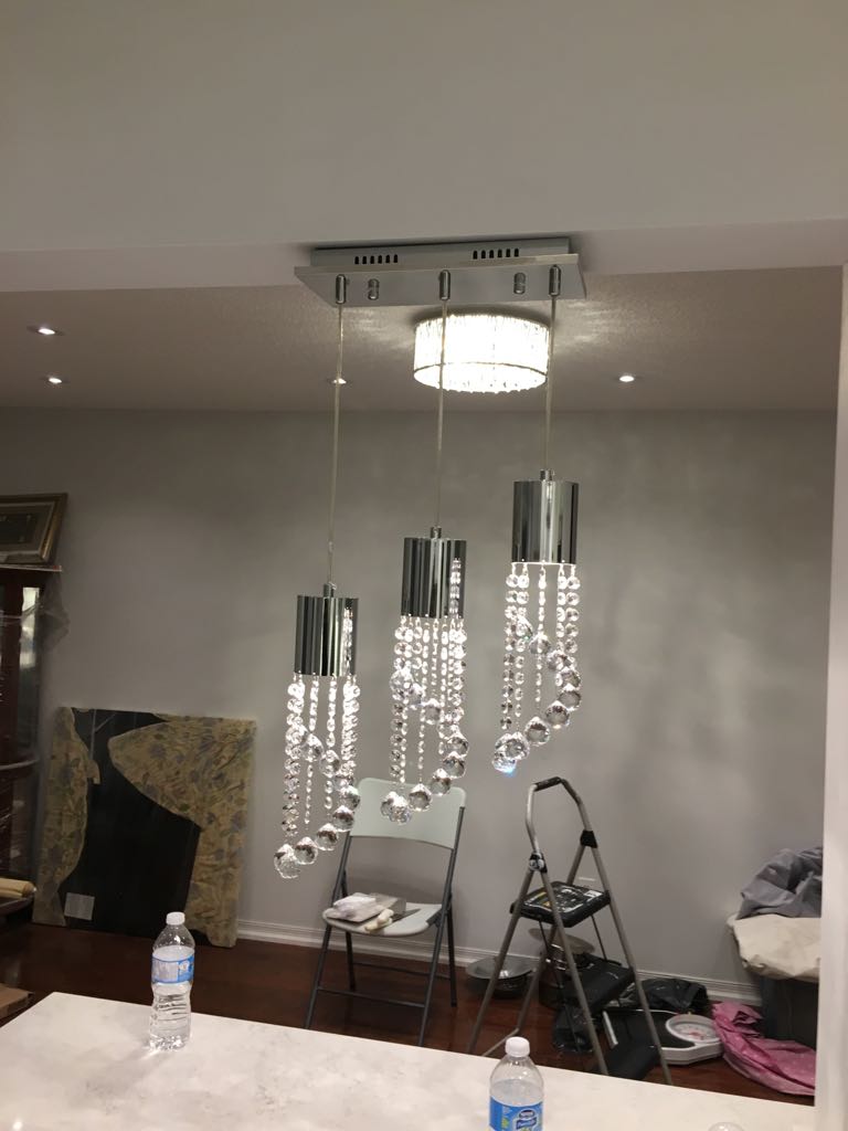 Interior lights including pot lights, kitchen cabinet lights, fixtures, valance lighting, high bay light, chandeliers, dimmer-switches, and decors-receptacle upgrade. Exterior lights including pot lights, patio lights and more.